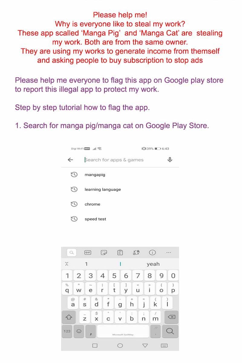 ððð Please, I need everyone help again! Please help me to report on an app that was illegally stealing my work
